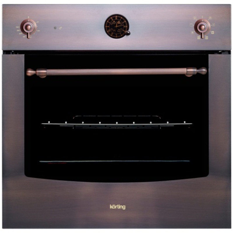 Аристократический дизайн духовки Korting OKB 471 CNRC призван украсить пространство классической кухни и внести нотки винтажной элегантности в интерьер. Модель исполнена в расцветке «медь» с фурнитурой под бронзу. Круглые часы со стрелками в классическом ретро-стиле скрывают за собой современный цифровой таймер с функцией автоматического выключения. Каталитическая система очистки духового шкафа работает автоматически и облегчает уход за прибором.
