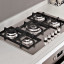 - высокоэффективные горелки экономят до 25% газа по сравнению с обычными, 69% энергии от горения газа передаётся посуде (в обычных моделях – 55%); увеличенное расстояние между горелками для использования посуды с широким дном